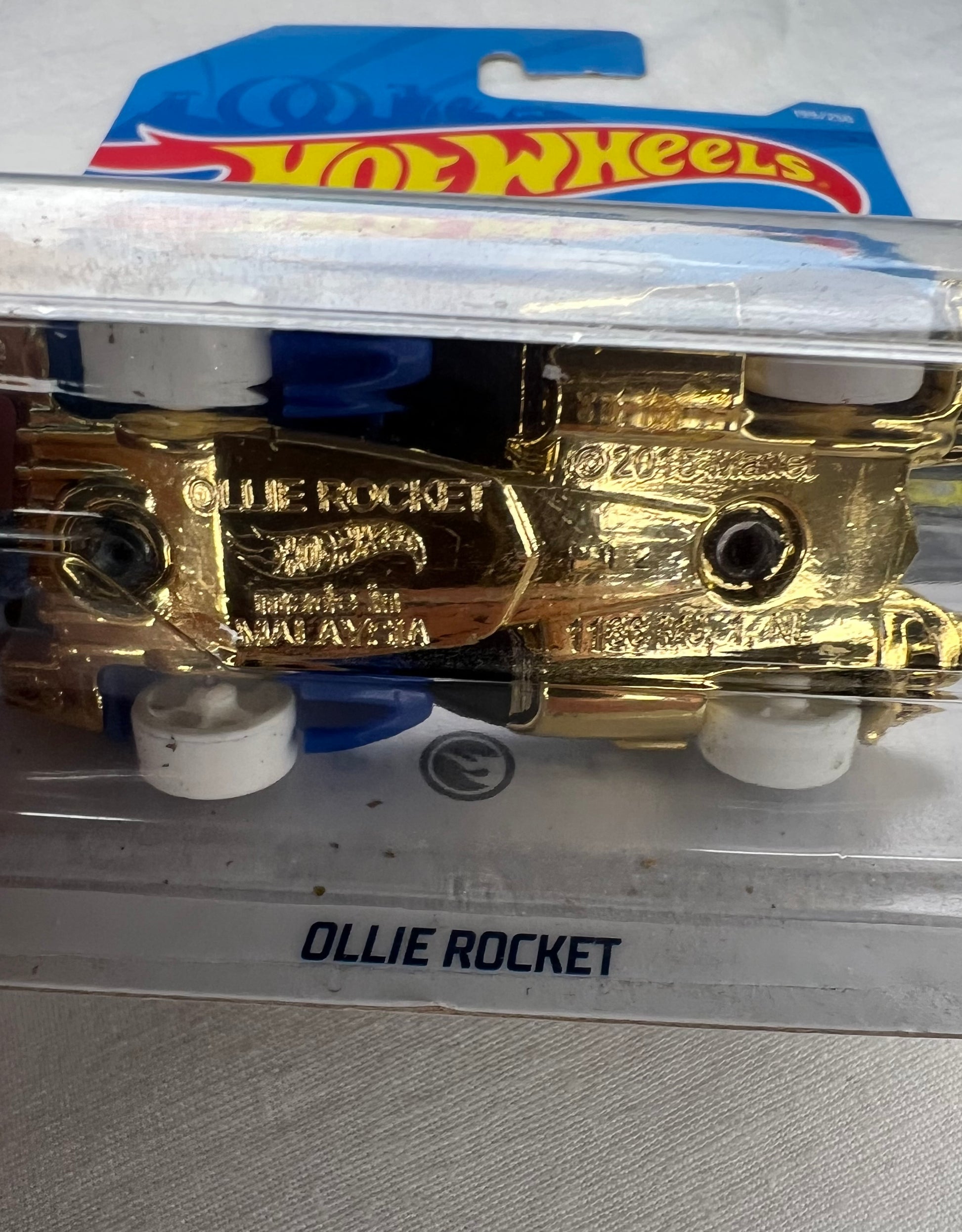 The Ollie Rocket from HW Space is one of the wildest designs of 2023, complete with gold turbine boosters, Asteroid Interceptor graphics, and that classic flame logo on the side and card – confirming it as a Treasure Hunt.