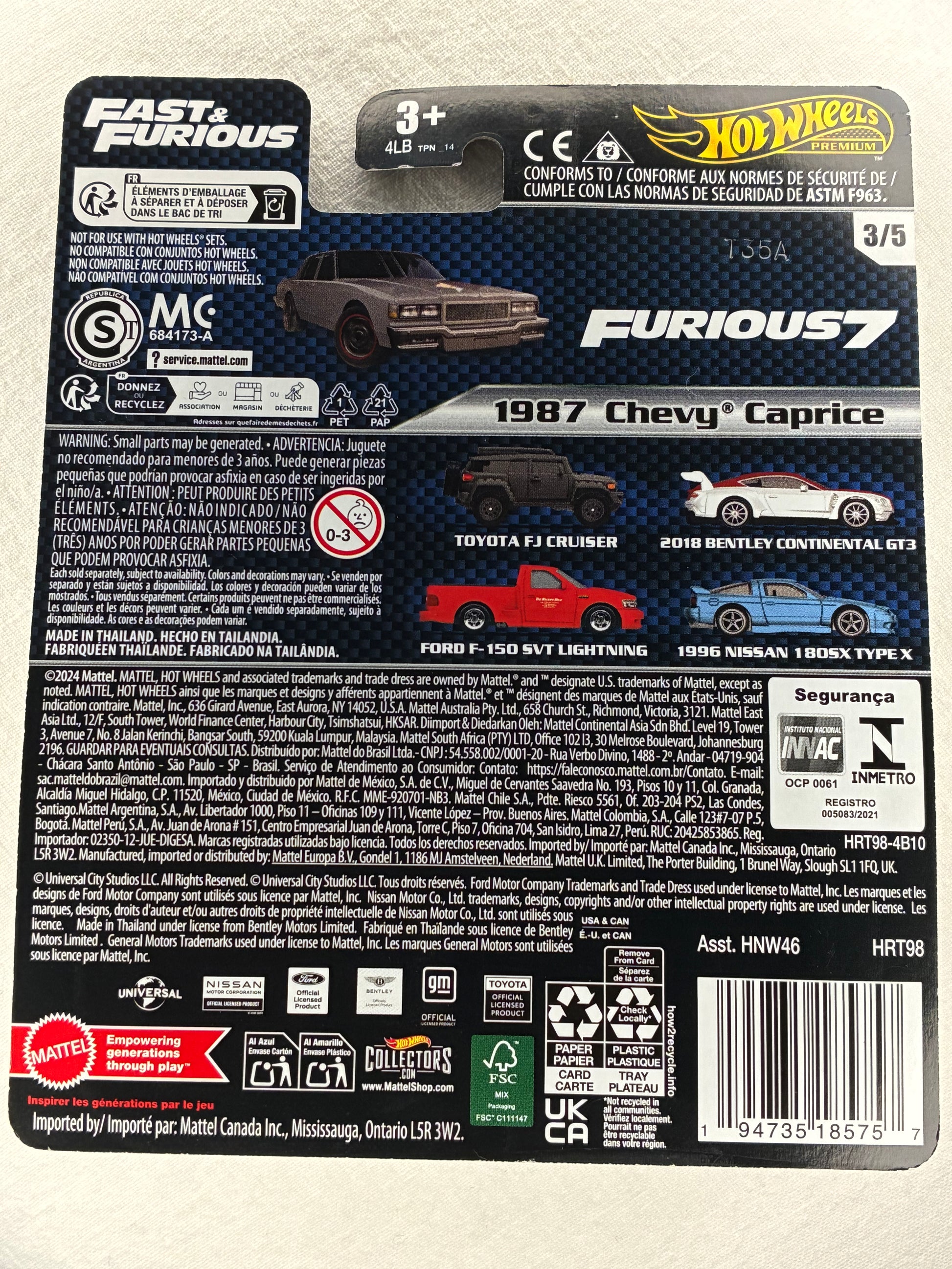 Hot Wheels Premium, 1987 Chevy Caprice, Fast & Furious Hot Wheels, HNW46, Real Riders, Diecast Cars, Collectibles, 1:64 Scale, Muscle Car, Movie Cars