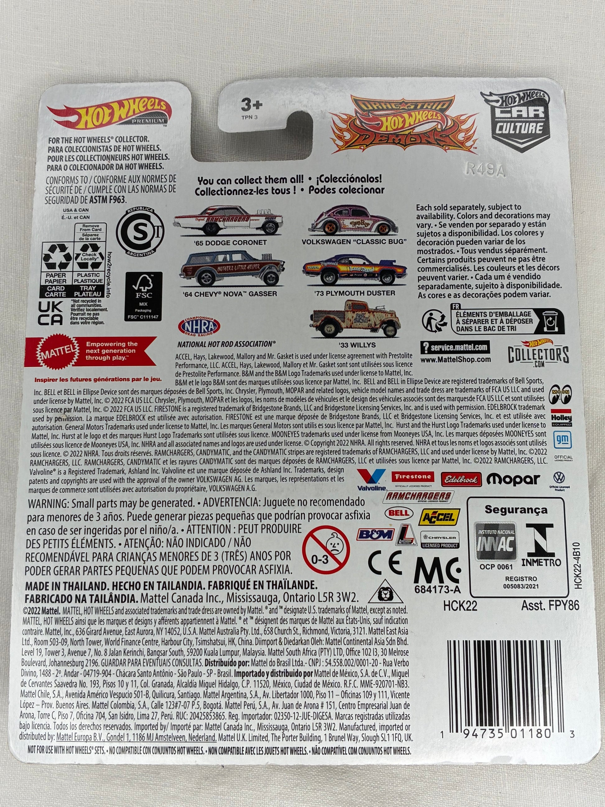 Unleash Mopar muscle with this premium Hot Wheels ’73 Plymouth Duster from the Drag Strip Demons series. Drenched in iconic “Last Stand” livery, this release features full metal/metal construction, Real Riders rubber tyres, and authentic NHRA drag racing vibes.