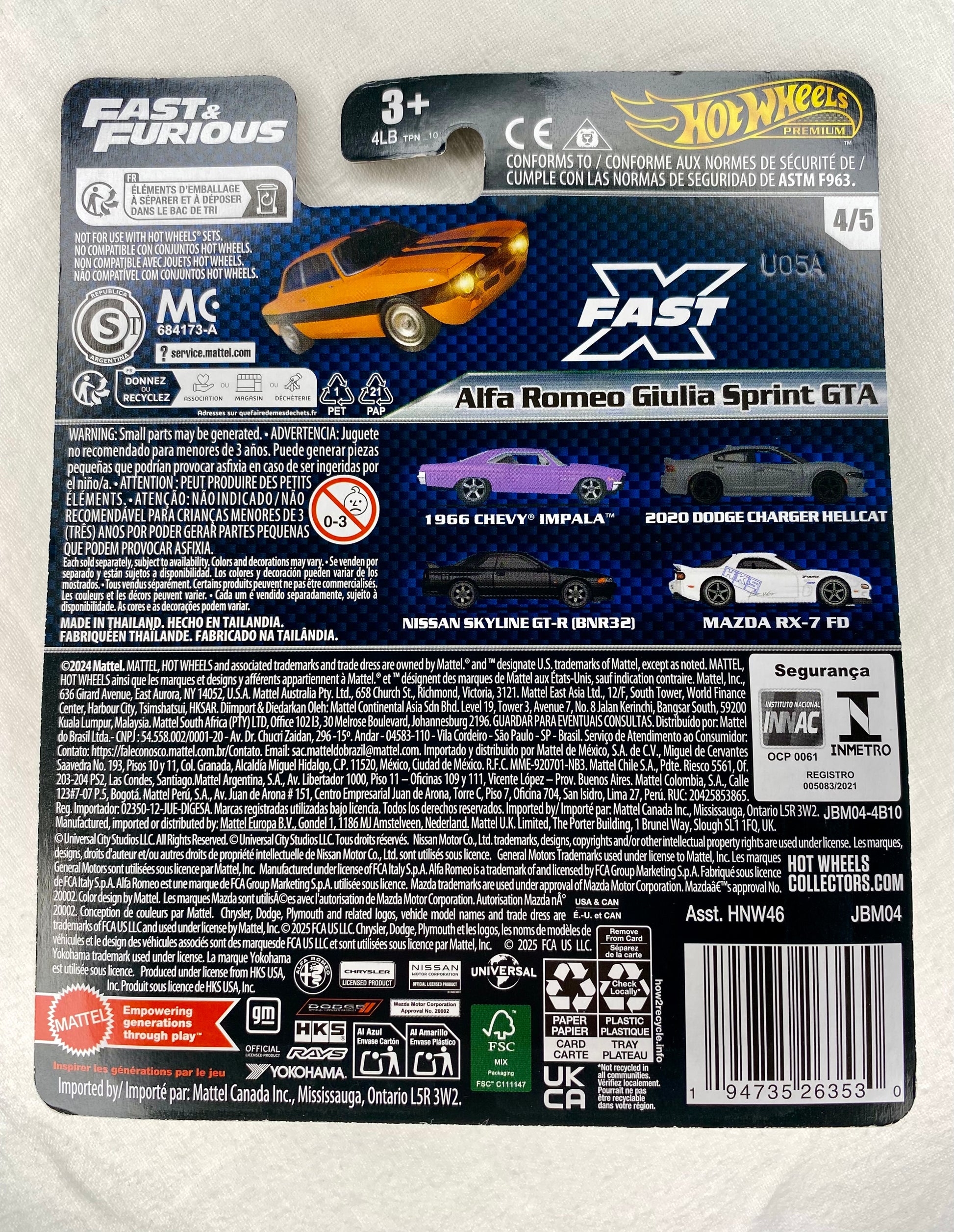 Hot Wheels Premium β Fast & Furious Alfa Romeo Giulia Sprint GTA (Real Riders, Metal/Metal)